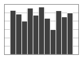 Гистограмма, не имеющая высокой центральной части (плато). Частоты в середине гистограммы примерно одинаковые (для плато все частоты примерно равны).