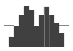 Двухпиковый тип (бимодальный тип). В окрестностях середины гистограммы частота низкая, но с каждой стороны есть по пику частот.
