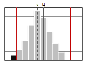 Гистограмма имеет вид обычного распределения. Ширина гистограммы примерно равна ширине поля допуска. Среднее значение гистограммы сдвинуто влево (вправо) относительно центра интервала допуска, причем один или несколько интервалов выходят за границу поля допуска, что свидетельствует о наличии дефектных деталей.