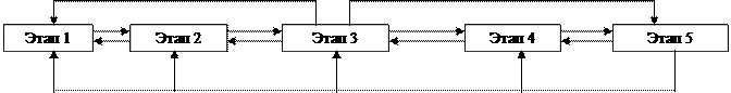 Как уже подчеркивалось, рассмотренные этапы не обязательно реализуются последовательно: соответствующие мероприятия могут осуществляться параллельно, возможен возврат к предыдущим этапам и т.д. Поэтому необходимо дополнительно проанализировать логические связи между этапами (рис. 3.2).