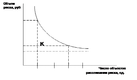 Рис.7. Зависимость объема (или степени) риска от диверсификации