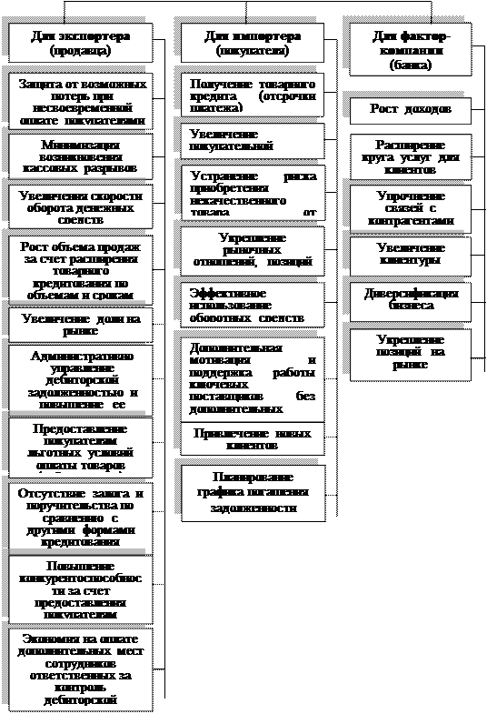 Рассмотрев такие формы международного кредитования, как факторинг и форфейтинг, нельзя не отметить их схожесть, однако между ними существуют значительные различия. Сравнительная характеристика этих форм кредитования представлена на рисунке 18.