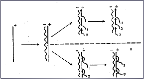 I— вытеснение ранее синтезированной нити растущей «плюс-нитью»;