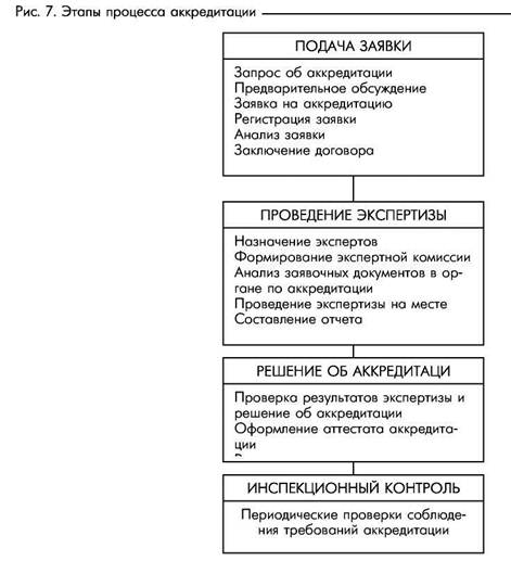 Стандартные процедуры четырех этапов процесса аккредитации показаны на рис. 7.