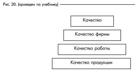 Схема приоритетов, ошибочно называемая в учебной литературе «пирамидой качества» в действительности есть ни что иное, как графическое изображение с помощью прямоугольников применительно к разным объектам исследования. Вершину такой «пирамиды» обычно образует категория качества, а затем - качество фирмы, качеств работы, качеств продукции и все остальное1.