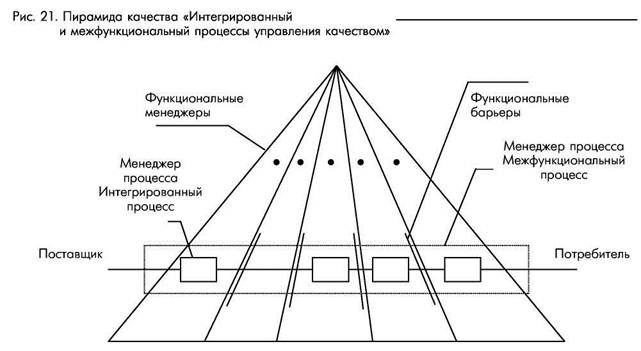 Пирамида качества - это геометрическое изображение интегрированного и функционального процесса управления качеством, как, например, процесс управления качеством труда менеджеров, что изображено на рис. 21.