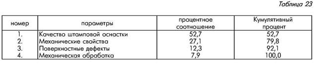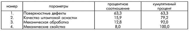 Главной причиной появления брака, как было выявлено, является качество штамповой оснастки и далее в порядке убывания: