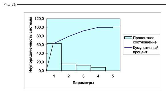 Покажем ранжирование первопричин (факторов) с помощью круговой диаграммы (рис. 25). Диаграмма построена по данным табл.