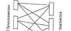 С помощью посредников можно сократить количество прямых контактов продавцов и покупателей. Нетрудно убедиться, что при трех продавцах и трех покупателях количество связей между ними будет равно девяти, (см. рис. 2.1.1).