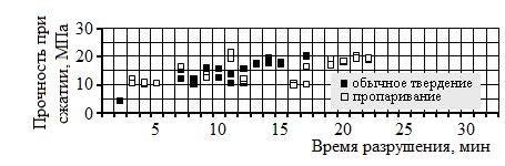 Рис.5.5. Взаимосвязь «прочность бетона – время разрушения»
