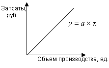 y — общие затраты; а — переменные затраты на ед. продукции; x — объем производства в ед. продукции; b — величина постоянных затрат за период