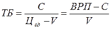 Поскольку для производителя является важным определение, при каких объемах выпуска продукции производство будет рентабельным, а при каких оно не будет давать прибыли, то необходимо произвести расчет точки безубыточности. Точка безубыточности (ТБ) - это минимальный размер партии выпускаемой продукции, при котором обеспечивается "нулевая прибыль" (доход от продаж равен издержкам производства). Определяется аналитически по формуле 62 или графически (рисунок 22).