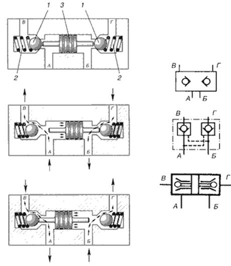 Гидрозамком называется направляющий гидроаппарат, предназначенный для пропускания потока рабочей жидкости в одном направлении при отсутствии управляющего воздействия, а при наличии управляющего воздействия - в обоих направлениях.