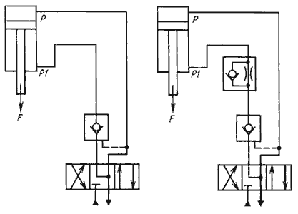 при наличии управляющего воздействия; д - условное обозначение одностороннего гидрозамка