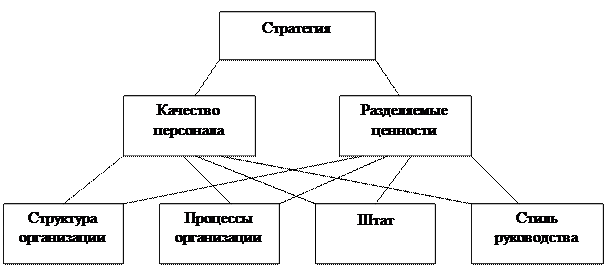 Модель Мак-Кинси «7S» представляет собой способ осмысления проблем, связанных с развитием или перестройкой организации. Эта модель не предлагает готовых вариантов стратегий, а позволяет осмыслить внутреннее положение организации, оказывающее влияние на ее будущее. Авторы модели – Томас Питерс, Роберт Уотерман, Ричард Паскаль, Энтони Атос (эксперты Мак-Кинси) пришли к выводу, что эффективная организация формируется на базе семи взаимосвязанных составляющих, изменение каждой из которых требует соответствующего изменения остальных шести (все они начинаются с первых английских букв S). Это: