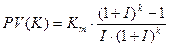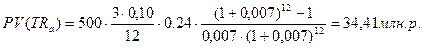 1. На первом этапе расчета осуществляется оценка стоимости платежей, связанных с покупкой имущества за счет кредита на начальный момент времени по формуле (6):