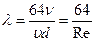 λ – коэффициент Дарси –коэффициент гидравлического сопротивления (показывает физический смысл, то есть какая часть скоростного напора теряется за счет трения при прохождении единицы длины l/d)