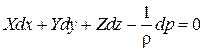 Рассмотрим равновесие жидкости, покоящейся в силовом поле, единичная массовая сила которого в проекции на оси координат = X, Y, Z.