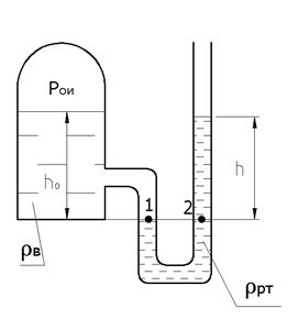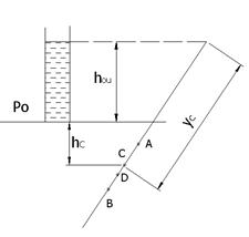 Если давление на свободной поверхности не равно атмосферному, силу давления на стенку целесообразно находить методом приведения к открытому резервуару. Суть метода: давление на свободной поверхности заменяется высотой столба жидкости.