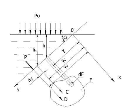 Точка приложения силы P расположена ниже центра тяжести. Точка приложения результирующей силы называется центром давления (Ц.Д.). Координаты этой точки определим, предполагая, что