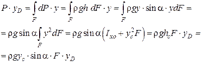 воспользуемся теоремой механики: момент результирующей силы равен сумме моментов всех составляющих сил (давлений).