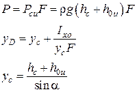 - сила давления на плоскую стенку равна произведению давления в центре тяжести и ее площади. В жидкости такой сосредоточенной силы нет – это механический эквивалент распределенной нагрузки.