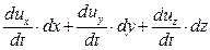 - полный дифференциал скорости, выраженной через ее составляющие по соответствующим осям координат.