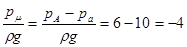 Если абсолютное гидростатическое давление в какой-либо точке жидкости (рис.5) меньше атмосферного (p<pа),то манометрическое давление в ней будет отрицательным. Например, если в точке А (рис.5) pА /