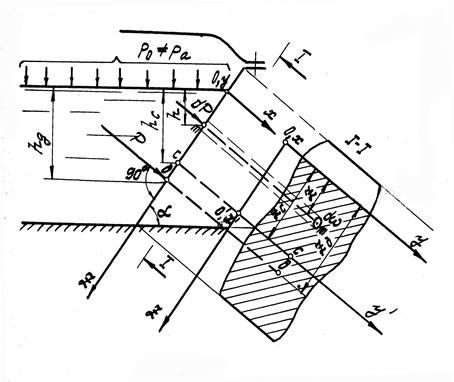Рассмотрим давление жидкости на плоскую стенку произвольного очертания, наклоненную к горизонту под углом