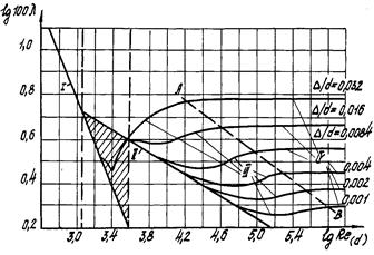 1–я область (линия 2) – область гидравлически гладких труб. В пределах этой области