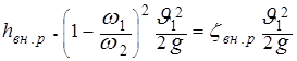 Эта формула, называемая формулой Борда, показывает, что потеря напора при внезапном расширении потока равна скоростному напору, вычисленному по потерянной скорости (