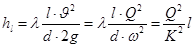 следует, что при заданном расходе жидкости потеря напора по длине трубопровода зависит от диаметра трубы.