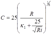 При расчетах открытых каналов для определения коэффициента С (изменяющегося, как указывалось ранее, в зависимости от размеров и формы сечения канала и шероховатости его стенок) часто применяются, формула Маннинга