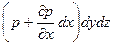 – градиент давления вблизи точки M в направлении оси X. Таким образом, на левую грань параллелепипеда действует поверхностная сила, равная