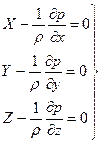 Система (2.5) дифференциальных уравнений гидростатики, описывающая условия равновесия жидкости называется уравнениями Эйлера.