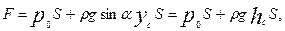 где рo - давление на свободной поверхности;h – глубина расположения площадки dS.