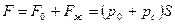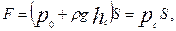 В общем случае давление ро может существенно отличаться от атмосферного, поэтому полную силу F давления жидкости на стенку будем рассматривать как сумму двух сил: Fо от внешнего давления р0 и силы Fж от веса жидкости, т.е.