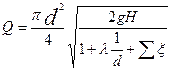 Вторая задача. Требуется определить пропускную способность (расход) трубопровода Q при условии, что известны напор Н, длина трубы