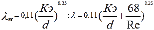 Квадратичная область сопротивления – когда коэффициент гидравлического трения не зависит от числа Re, а определяется только относительной шероховатостью стенок трубопровода.
