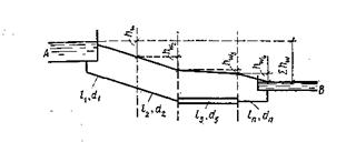При последовательном соединении трубопроводов различных диаметров и длины полная потеря напора в трубопроводе будет