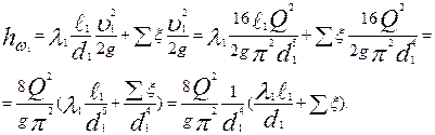 Подставляя для каждой потери напора ее выражения по формуле (6.7), получим