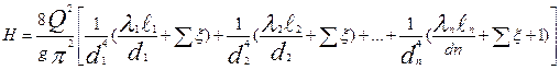 1) определение напора Н, необходимого для пропуска расхода Q по заданному трубопроводу диаметром d, производится непосредственно по формуле (6.7) или (6.12);