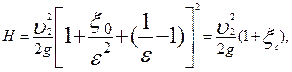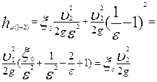 Потери напора в насадке складываются из потерь на вход в насадок и на внезапное расширение сжатой струи внутри насадка, т.е.
