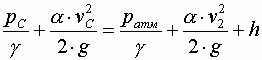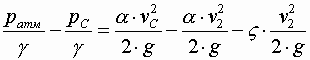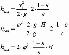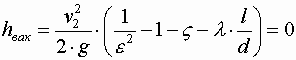 Величина вакуума в сжатом сечении насадка