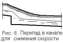 3) уменьшение уклона за счет изменения трассы канала или устройства перепадов (рис. 8).
