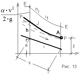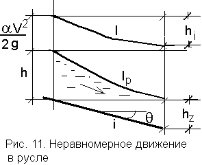 Это – основное уравнение неравномерного движения, dz может иметь как положительное значение (подъем уровня), так и отрицательное (спад).