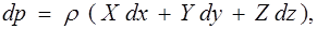 с компонентами (X, Y, Z) называется плотностью массовых сил или напряжением массовых сил (массовая сила, рассчитанная на единицу массы; размерность — ускорение). Дифференциальное уравнение поверхности равного давления (изобарической поверхности) имеет вид