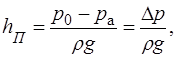 Если р0 > р а, то Dр> 0, и пьезометрическая поверхность располагается выше уровня жидкости в сосуде; если p0 <р а, то Dр <0, и она находится ниже уровня жидкости; если р0 = р а, то пьезометрическая поверхность совпадает с поверхностью жидкости.