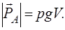 A, равная по величине весу жидкости в объеме погруженной части тела V: