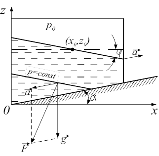 где x0 , z0 — координаты произвольной фиксированной точки свободной поверхности, определяемые объемом жидкости, находящейся в сосуде; Р0 — абсолютное давление на свободной поверхности.
